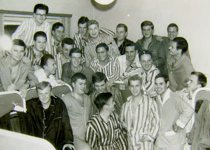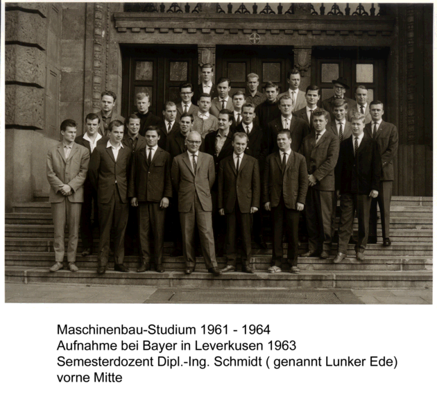 Vorbereitung für den Rest der Studienzeit ... denn Lunker-Ede (Semesterdozent Dipl.-Ing. Schmidt) meinte: Das Bild, aufgenommen in der Jugendherberge Koblenz anlässlich einer Studienreise im September 1963, wurde von Dipl.-Ing. Falkenhagen (Absolvent des Jahres 1964) zur Verfügung gestellt. |