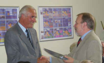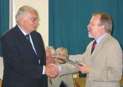 Bei einem kleinen Sektempfang gab der Dekan mit einer PowerPoint-Präsentation einen Überblick über die fast 100-jährige Geschichte des Fachbereichs (weitere Bilder), ... |
